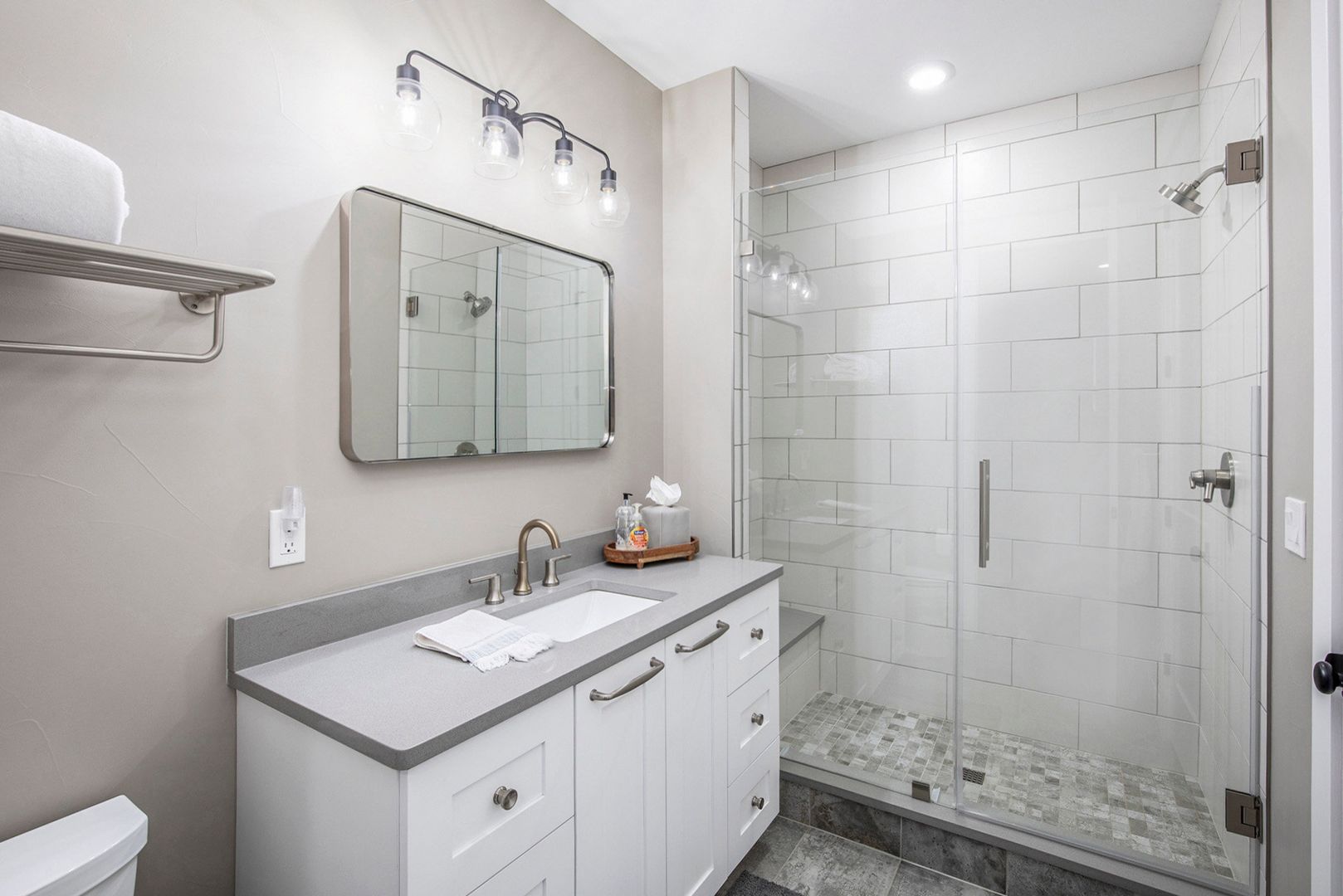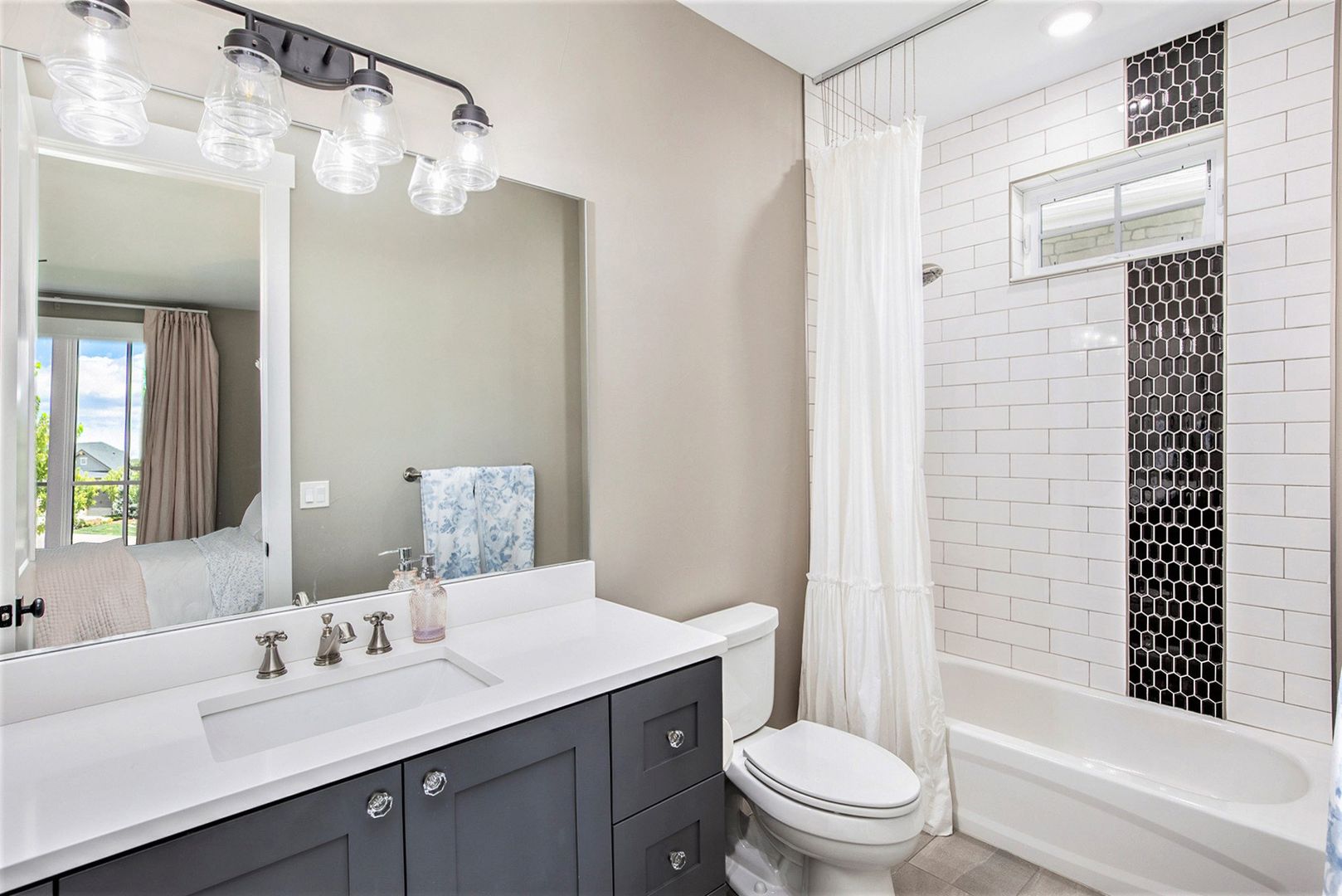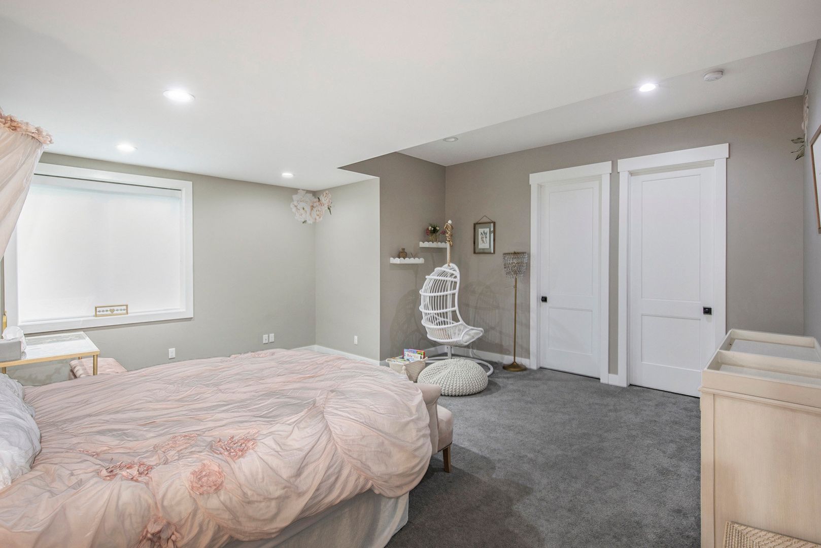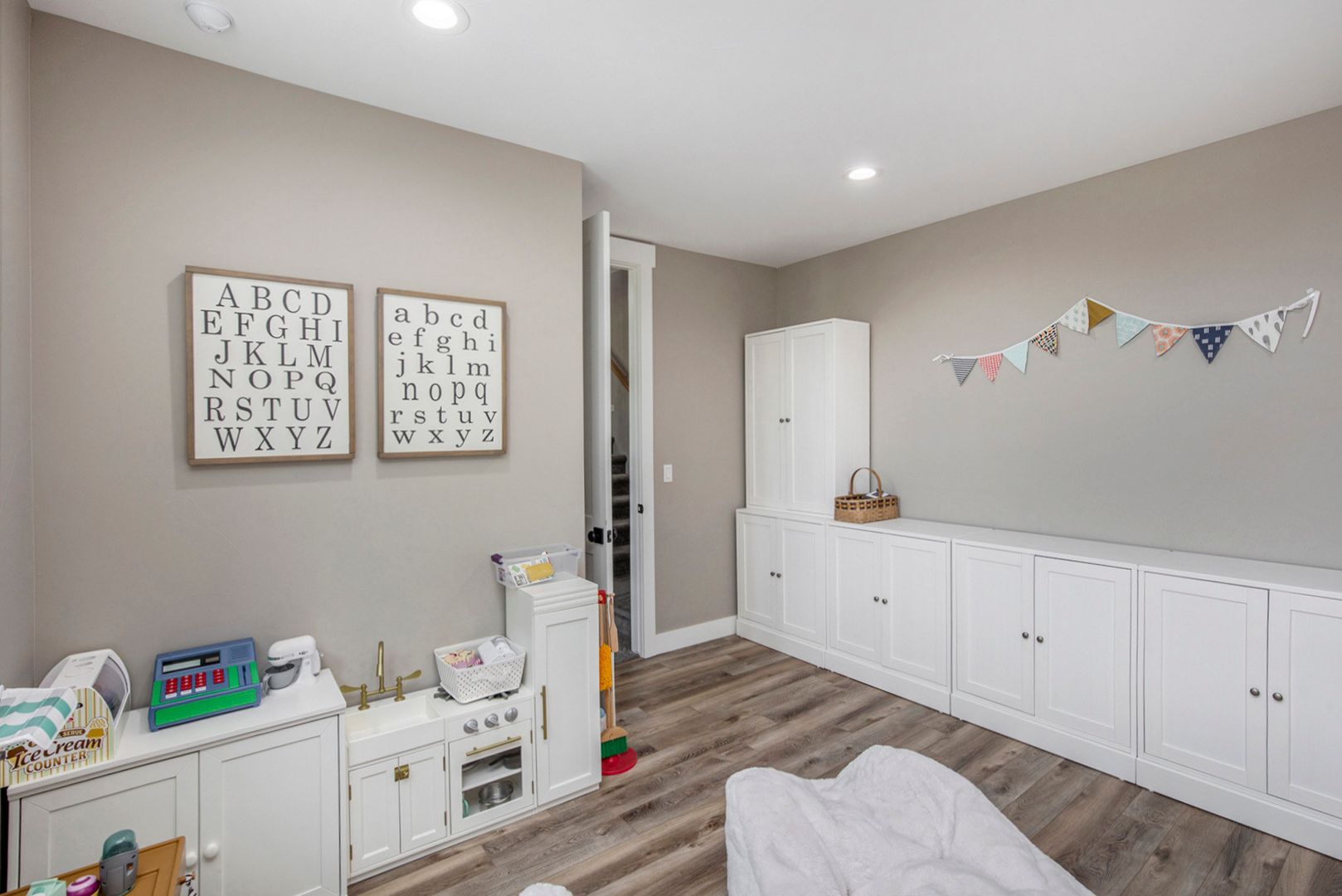 The gourmet kitchen features a large quartz island, farmhouse sink, custom hood, double ovens, and high-end appliances—perfect for both everyday living and entertaining. The spacious great room includes a modern linear fireplace and opens to a covered patio with a built-in grill and outdoor fireplace. The primary suite is a serene retreat with a spa-like bath, soaking tub, and walk-in shower. Additional highlights include 4 bedrooms, 3.5 bathrooms, a dedicated home office, fully finished basement with wet bar and wine fridge, basement bonus/play room, and multiple outdoor living areas.